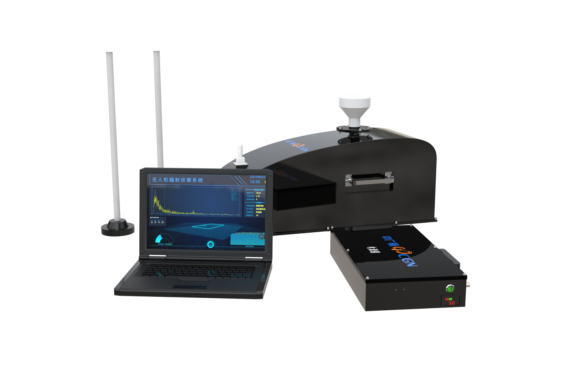 無人機輻射偵察系統用于測量核事故危險源(如核試驗、核打擊、核電站反應堆事故)地面、上空或放射性煙云的核輻射水平和主要核素分布,為核事故早期的事故狀態研判和應急決策活動提供技術支持。